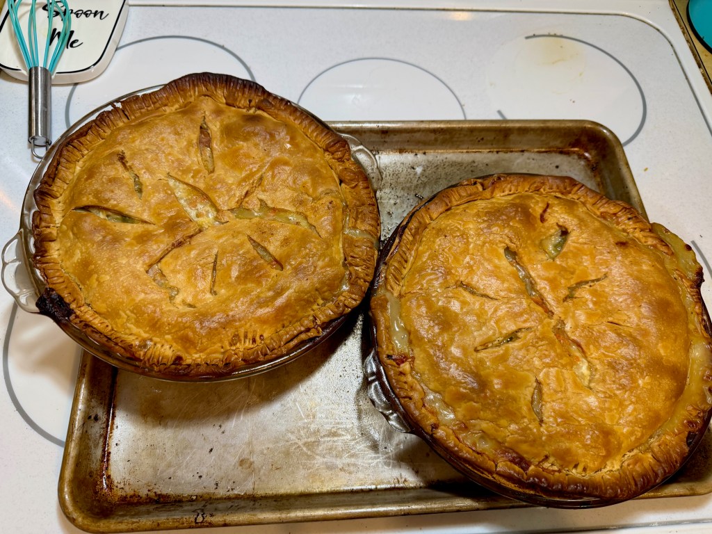 We had an unconventional Christmas holiday here chez Schiffer. ๐ My son and I made two delicious chicken pot pies, one of which we ate for evening treat. Friday I spent with a bit of sewing and watching my sweetheart play video games (which he enjoys and I like watching). The weather was lovely on Thursday (Christmas Day), though a bit cold. Blue skies, temperatures in the 40s.